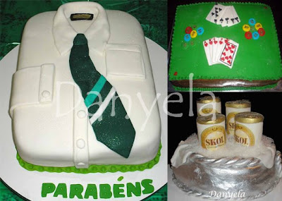 Bolos Masculinos. Bolo Camisa Social, Bolo Skol e Bolo jogo de Baralho.